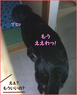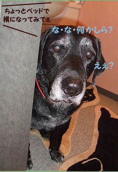 ドアを外したのはだぁ~れぇ~」 すると大きなクッションを咥えて 和室へと逃げ込む超犬ハルク