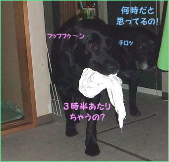 良いわよねぇ~)2号が暗闇ではしゃぐたびに 起こされて ヾ(´囗`。)ノ ネムレナァーイ