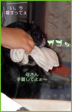 2号ちゃんの体と足を拭くタオルを運ぶところねぇ